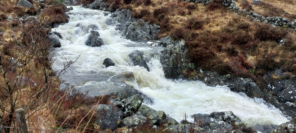 The path was a steady uphill climb above Buchan Burn passing some gorgeous waterfalls before going into a forestry plantation and passing a bothy at Kilsharg where I had a well earned coffee break before continuing uphill on a defined path.
