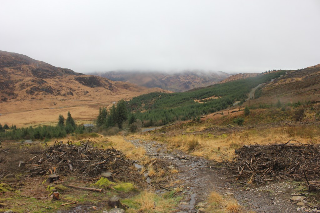The path went gently uphill at this point but the ground was very wet and boggy. The clouds were also starting to close in and I was wondering whether I would get to the summit at all.