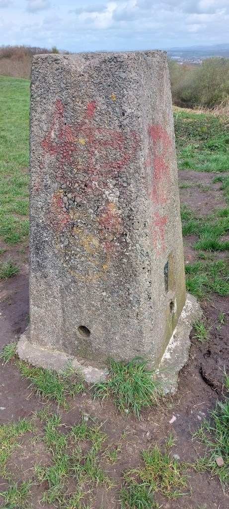 Following a bridleway and crossing a few fields, I reached the main Rainford Road turning right to go uphill to Red Barn Road before following a public footpath heading uphill to the old Billinge Quarry access road. A short walk took me to the summit of Billinge Hill where I had the obligatory photo taken.