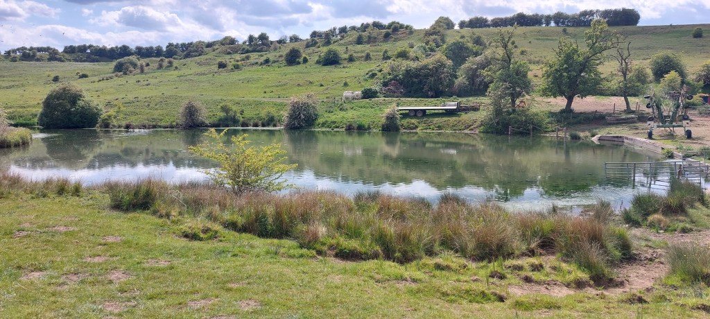 We passed through the wood and onto a track passing a small lake near Nettleton Grange and a T junction.
