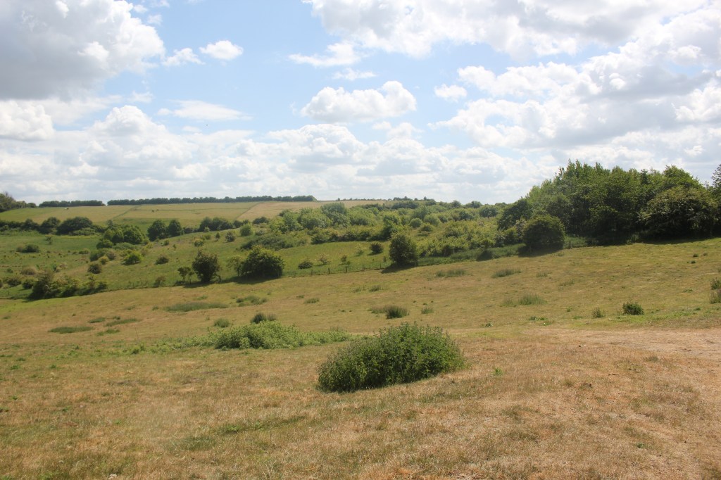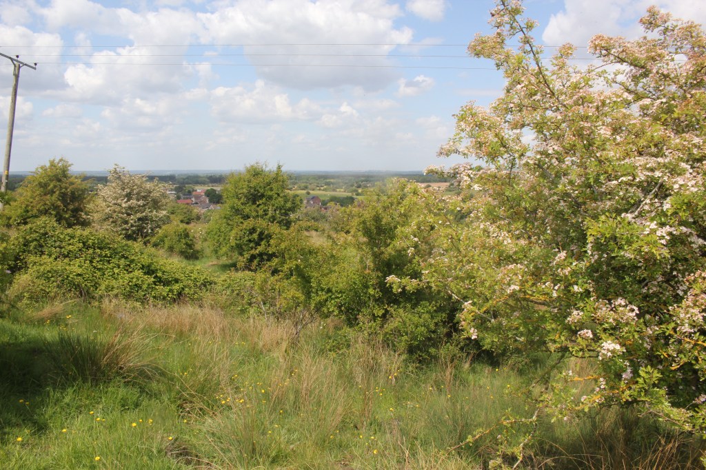 We walked back to the junction of the A46 by the Salutation Inn, turned left and walked along the road just past the junction for South Kelsey on the right and found a footpath sign by a gate. As the gate was locked we had to follow the permissive path which doubles back on itself before reaching a stile giving us access to the open hill. We then walked through a few scattered gorse bushes to reach the obvious path going uphill. Looking back, we had good views over the surrounding countryside and Nettleton Village. The ground was incredibly dry due to a lack of rain this spring.
