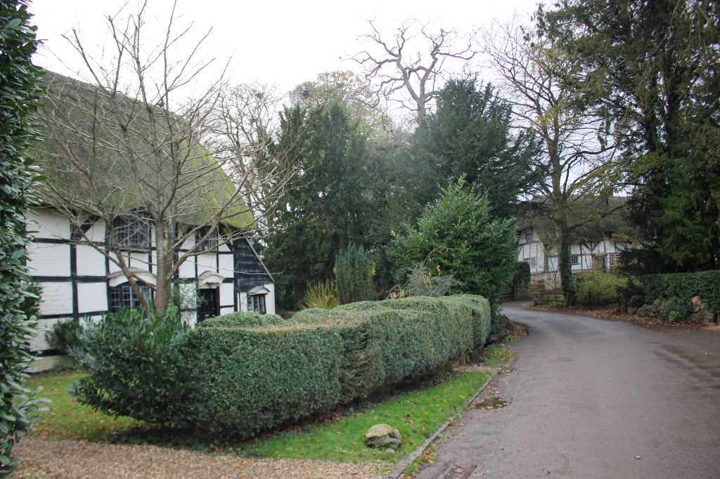 At the road, I turned right and shortly turned left onto a track past paddocks and then a plantation of deciduous trees. This continued for a while alongside field edges before reaching a road. I turned left here to walk along the road back into Woolstone Village and back to the White horse Inn car park where I had left my van.