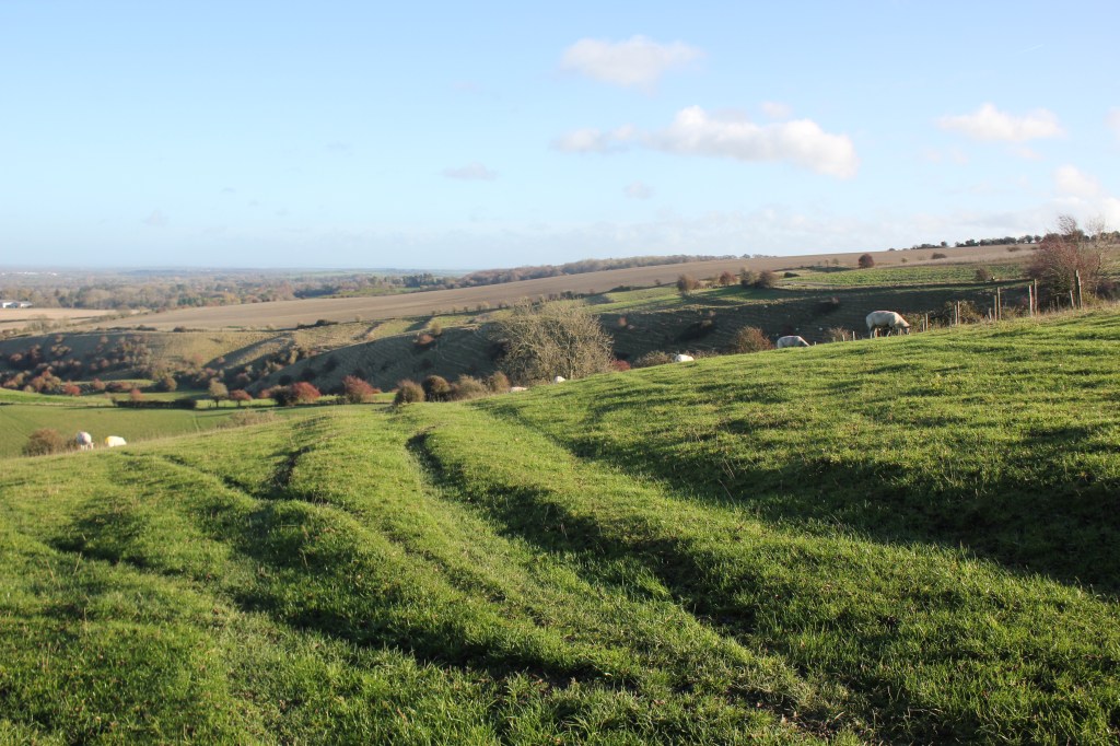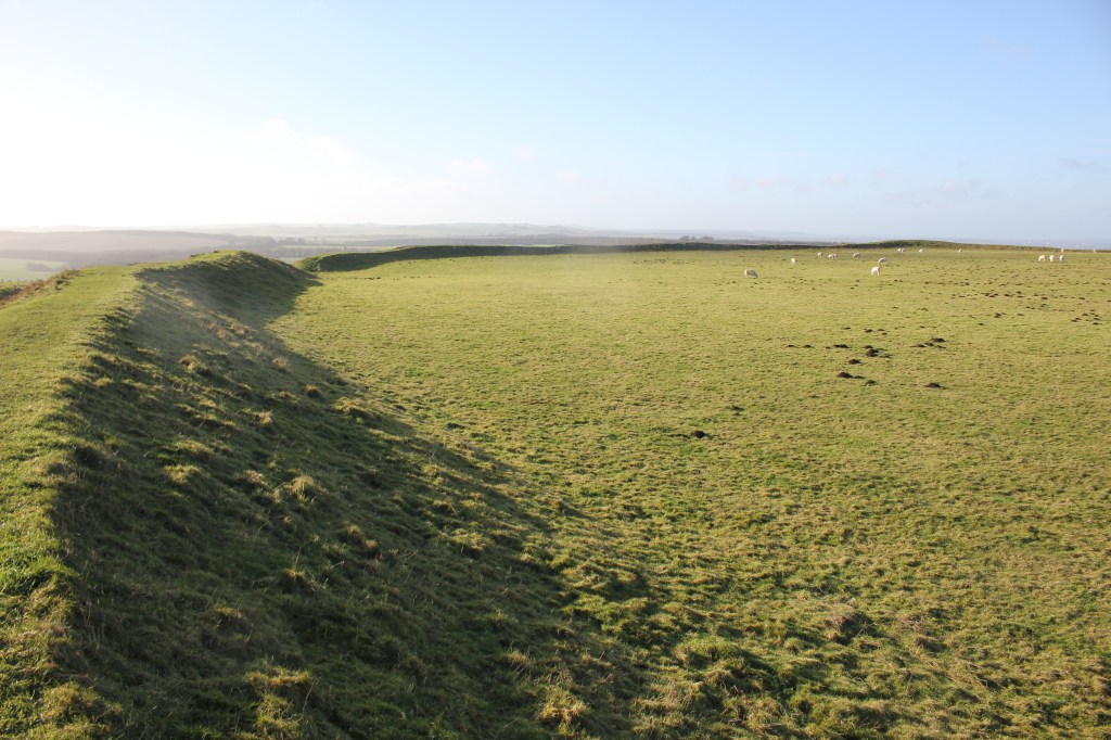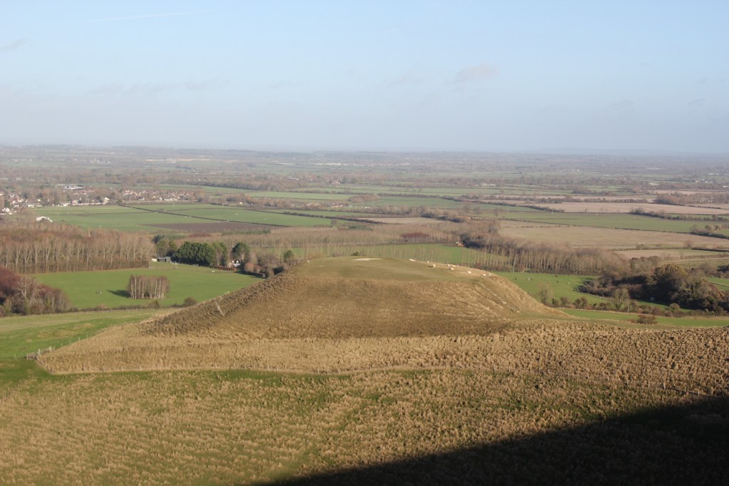 Uffington Castle is an early Iron Age fort constructed about 2700 years ago and had a single ditch and rampart. You can walk all the way around the edge of it and have fabulous views over the immediate area.