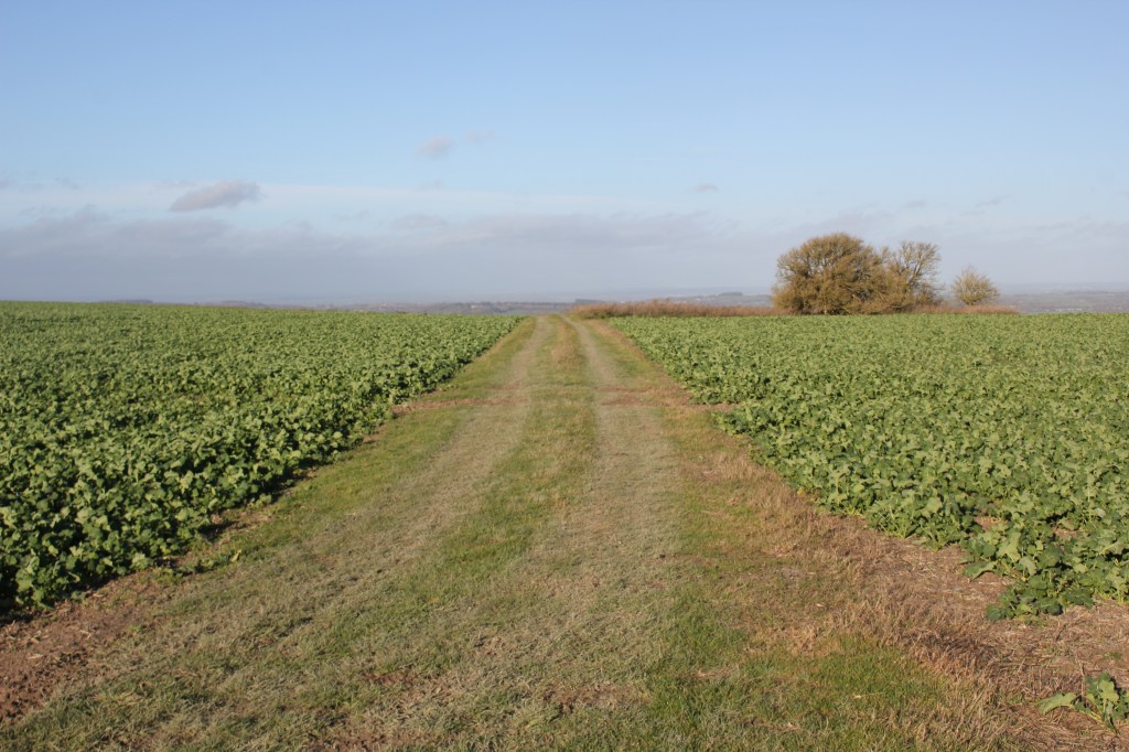 At the bottom of the slope before a long belt of trees on the right, I turned left across a field on a wide grassy track.